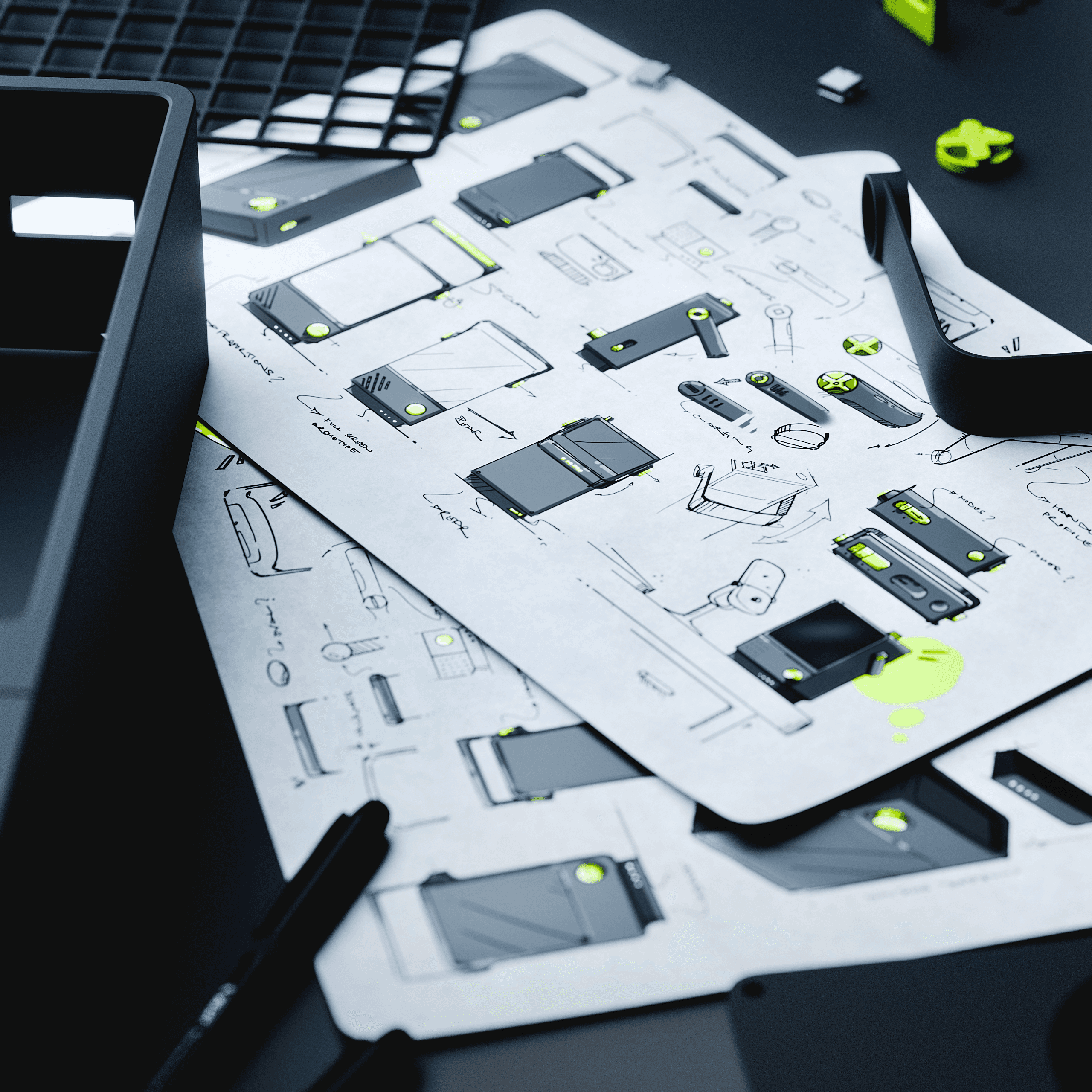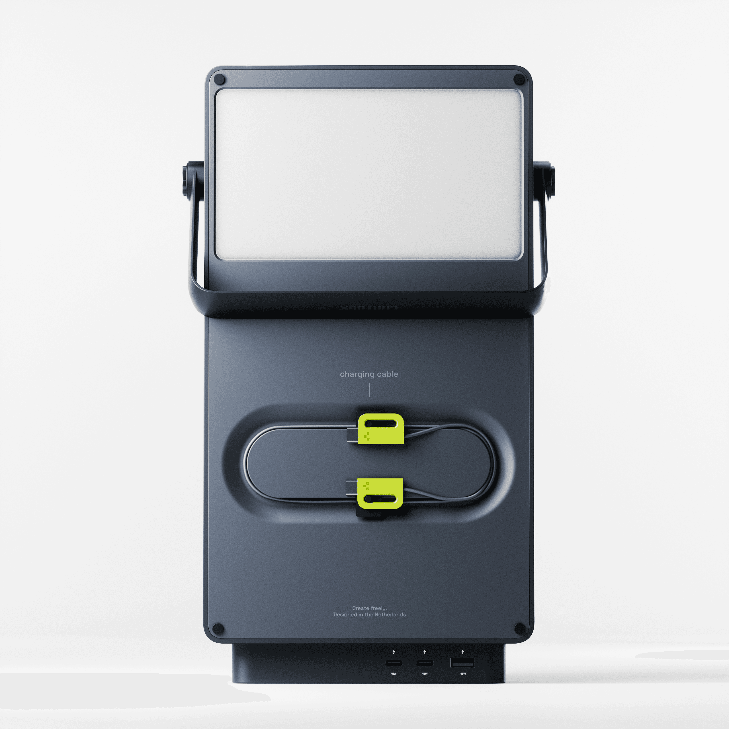 The form is inspired by the very devices it will be sharing the desk with so the product doesn't overshadow the personality on-screen.