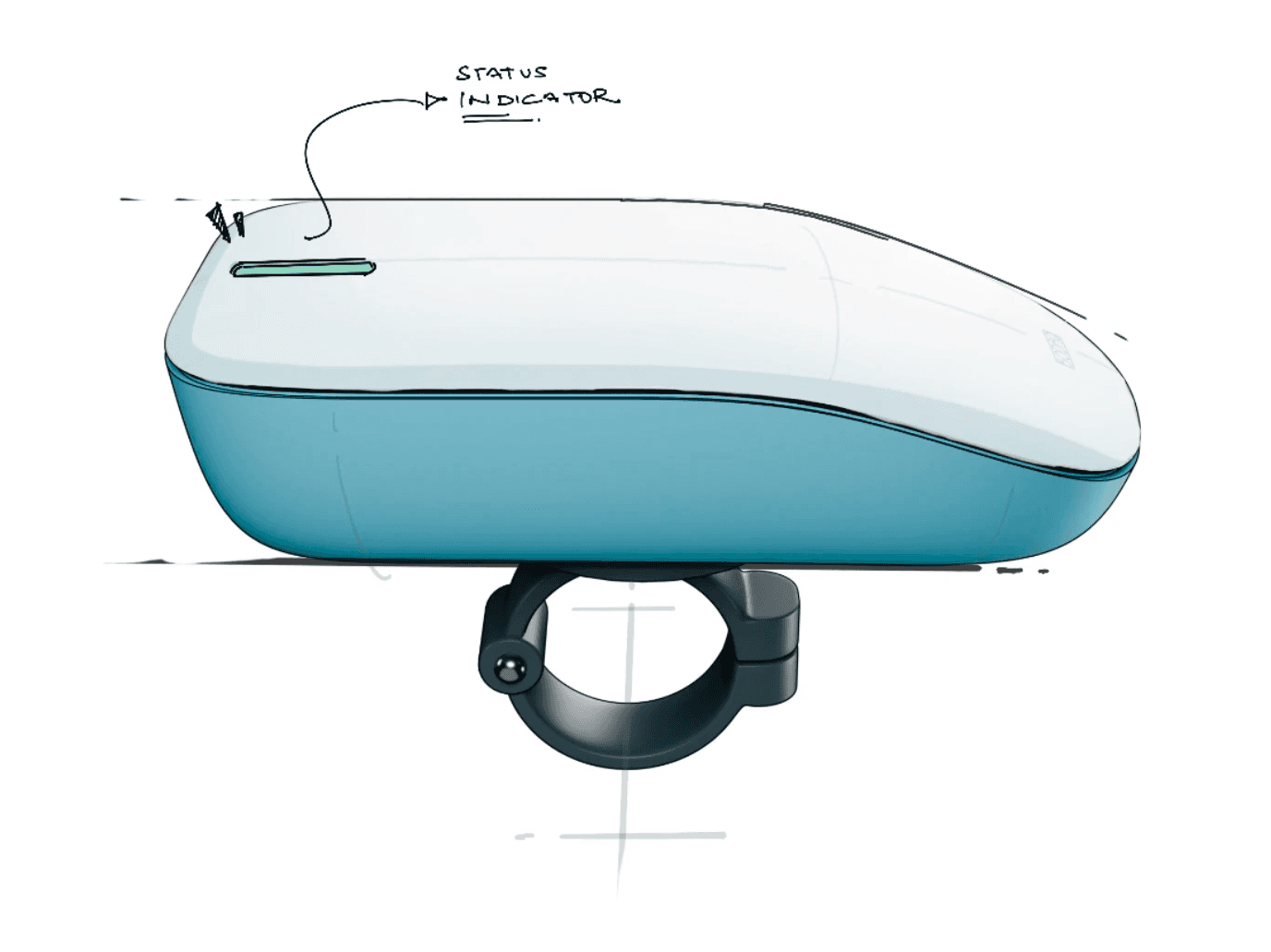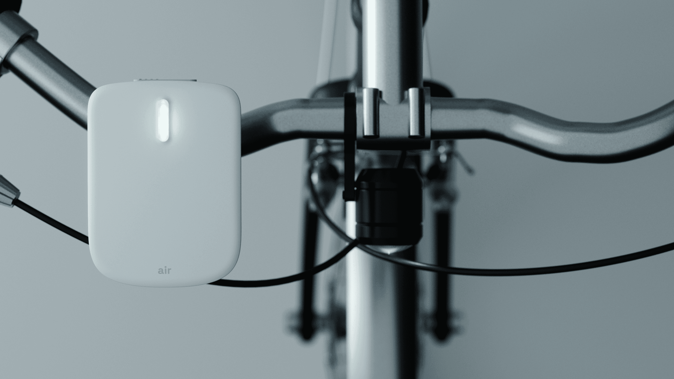 The new Sniffer Bike is compact, lightweight, communicative and communicates its functions clearly. It has a charging port at the back with a charging indicator, an air quality indicator light at the top to show the live air quality when cycling. The design on the front shows its air interaction.