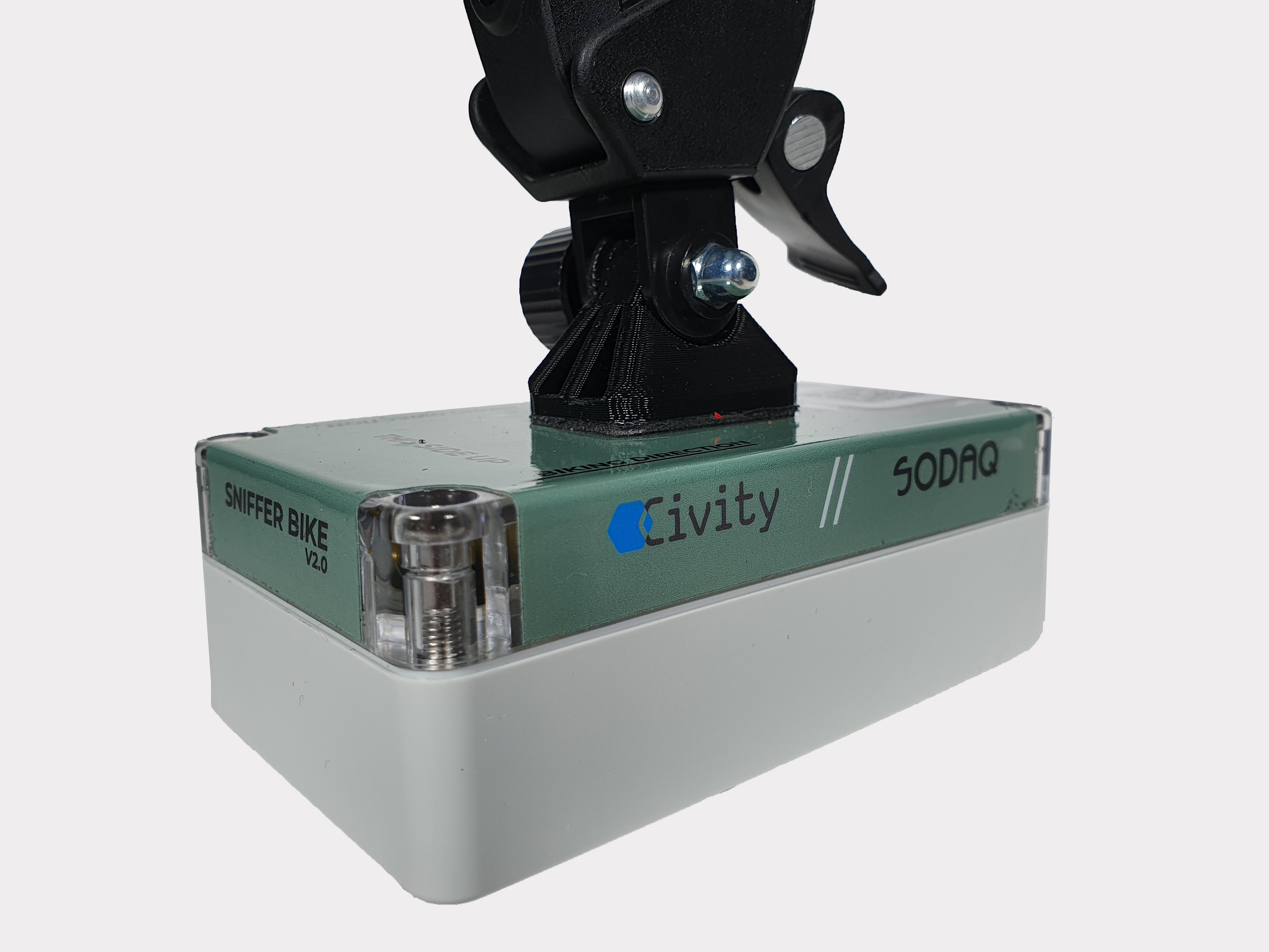 The Snifferbike is a holistic, interaction-focused redesign of SODAQ's electronics-in-a-box type air quality sensor device. Its primary use-case is that it's always mounted on bicycles and used to map out the local air quality of a city or neighbourhood as the person cycles. This helps the municipality collect data and work for the development of the region.